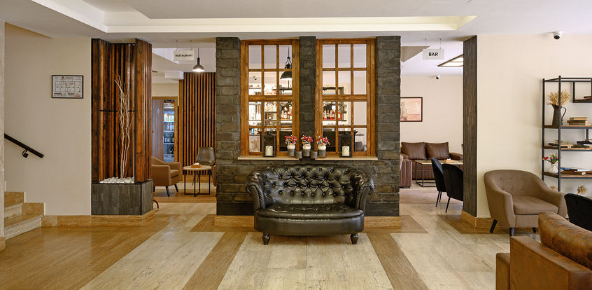 Modern rooms are furnished with originally unique furniture. In each room there is a mini-bar, seating area, air conditioning, flat-screen TV and safe and free WiFi access.